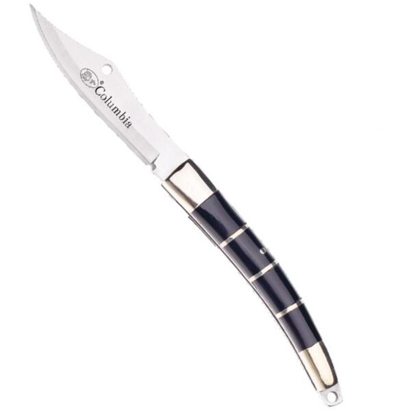 Termék részletekCOLUMBIA Outdoor összecsukható kés-12,5/7cm Fémből készült, összecsukható zsebkés a legjobb minőségű anyagokból. Tökéletesen kézbe illik, kiváló munkaeszköz. Mindennapi használatra. A kés pengéjét farkas-ábrázolás és COLUMBIA felirat díszíti. Tulajdonságok: A kés mérete: teljes hosszúsága kinyitva 12,5cm, hosszúsága öszecsukva 7cm, penge hosszúsága 5,1cm Sz