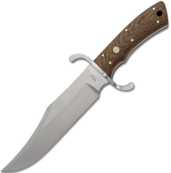 A hagyományos Boker Bowie kés kialakítása a 19. század elejétől kezdve az eredeti mintákon alapul, és rendkívül robusztus, 6,4 mm vastag pengével rendelkezik, N690 acélból. A kés neve James "Jim" Bowie-re nyúlik vissza, aki a vadnyugat híres úttörője és katona. A szépen feldolgozott tölgyfatartók még később hitelessé teszik ezt a kést. Jön egy minőségi Western Black