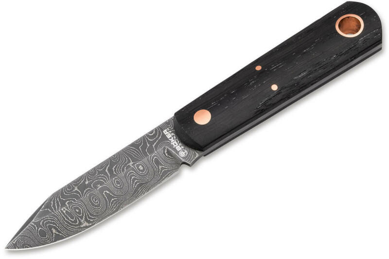 Termék részletekA Lucas Burnley Böker Barlow BFF kompakt stabil kés egyszerű kialakítású, de egy ultrakönnyű EDC kés tulajdonságait rejti magában. Előnye a fulltang felépítés, a tartós anyagok és a funkcionális kialakítás minden helyzethez. A penge rozsdamentes damaszkuszi acélból készült. A tölgyfából készült nyél elegáns rusztikus megjelenést kölcsönöz a késnek. Rézszegecsek