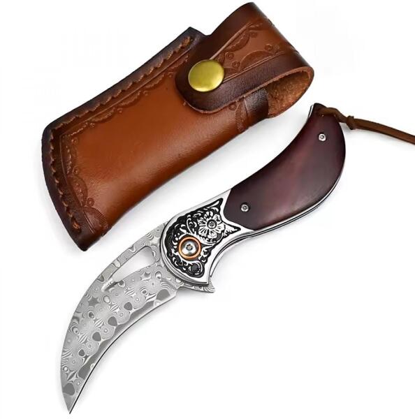 Jason damaszk outdoor összecsukható kés Összecsukható kés damaszk acél pengével, melynek látványos mintázata és ívelt alakja van. Ideális a speciális metszéshez vagy vágáshoz és használathoz. A kés markolata sötét színű fából készült, ergonomikusan kialakított a kényelmes kézben tartás érdekében. Részletgazdag mintával díszített vasalás van a pengével össz