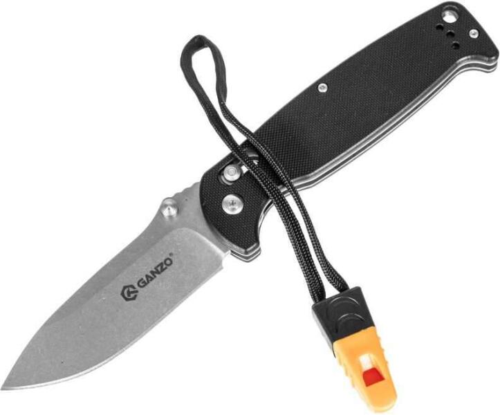 Termék részletekA Ganzo G7412-BK-WS egy összecsukható kültéri kés, amely 440C rozsdamentes acélból készült pengével, kényelmes G-lakattal, G10 béléssel és kétoldalas csapszeggel rendelkezik a penge azonnali bevetéséhez. Jár hozzá egy jelzősíppal ellátott zsinór.