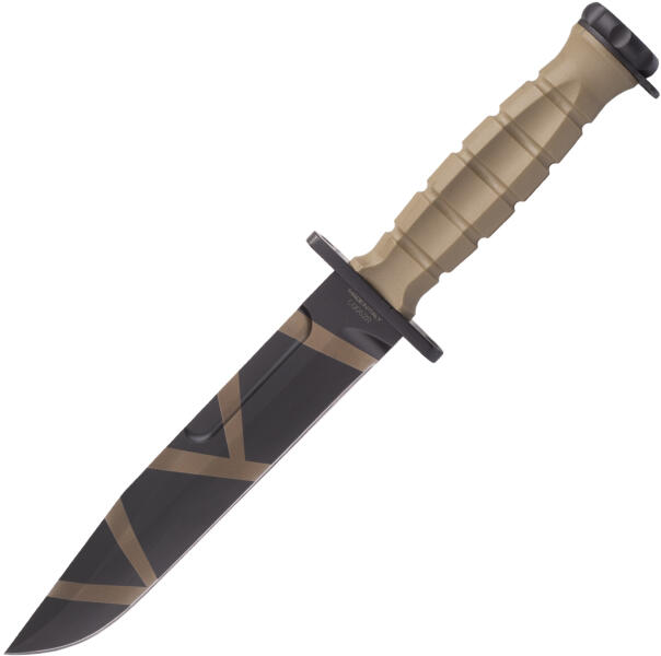 Taktikailag megmunkált kés Extrema Ratio MK2.1 DESERT WARFARE a második világháborúból, a MARK 2 kés szerint. Masszív pengével, sima élével, Bohler N690 acélból készült, homok-fekete színben. Kétoldalas védelem szolgál a kéz védelmére. Horonyzott fogantyúval rendelkezik, tartós, keményített, arany színű nylonból. Ballisztikus nejlon tokkal rendelkezik.