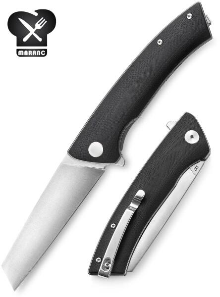 Stílus: Konvex él Penge anyaga: D2 acél Penge felület: kézi szatén Fogantyú anyaga: G10 fekete Zárási stílus: Vonalzár Keménység: 58-60 HRC Csapágy: Golyóscsapágy Méretek: Teljes hossz: 21cm (210mm) Penge hossza: 9,5 cm (95 mm) Zárt hossz: 12,5 cm (125 mm) Penge szélessége: 2,7 cm (27 mm) Penge vastagsága: 0,4 cm (4 mm) Nettó tömeg: 5,72 uncia (162,4 g) Használat: kültéri
