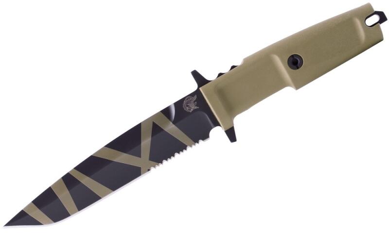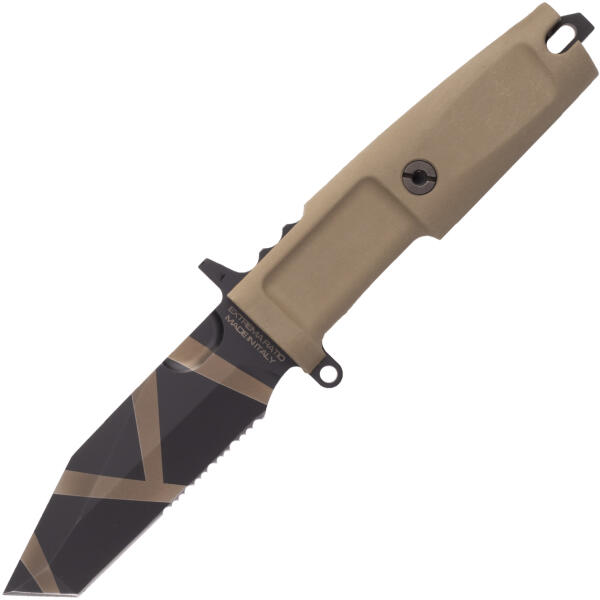 Ez egy tipikus harci kés, amelyet az olasz különleges erők neves 9. ejtőernyős támadó ezrede, az "Col Moschin" megrendelésre készített, amelyet 2002-ben hivatalosan is elfogadtak. Harcoljon a tőr Extrema Ratio COL MOSCHIN DESERT WARFARE-val egy rögzített pengével, részleges fogazású Bohler N690 acélból, tükröződés nélküli matt felülettel, a Desert Warfare sivatagi tereps