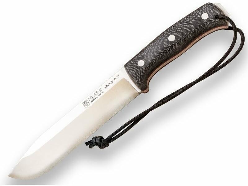 A Joker Nomad kültéri kés az Albacete (Spanyolország) eredetmegjelöléssel készült. Ez egy tökéletes stabil kés a szabadtéri kirándulásokhoz. A fulltang felépítésű penge Böhler N695 rozsdamentes acélból készül. Az öntött markolat tartós micartából készült. A fogantyú végén van egy nyílás a paracordos zsinór számára. A kés kiváló minőségű bőrtokkal és je