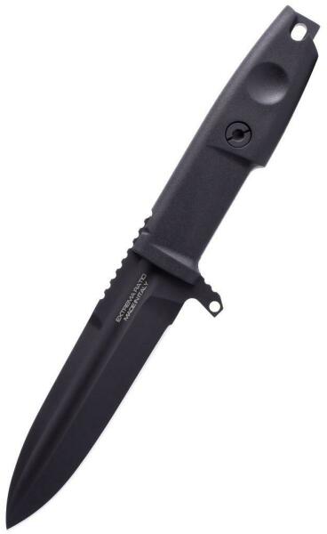 A Scout kés harci verziója, az Extrema Ratio DEFENDER 2 BLACK rendkívül vékony alakú, egy 12 cm hosszú pengével rendelkezik, amely Bohler N690 acélból készült, fekete felülettel. Egyoldalas kézi védővel rendelkezik. A fogantyú tartós és csúszásmentes, fekete fekete Forprénből készült, egy lyukkal a húrhoz. A Kydex tokkal, amely kompatibilis a MOLLE rendszerrel.