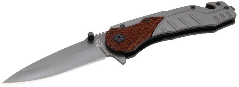 Termék részletekA Cattara Wood 21 cm-es összecsukható zsebkés a kempingezés, a horgászat és a legtöbb szabadtéri tevékenység elengedhetetlen kelléke. A kés pengéje késacél 20J2, 9 cm hosszú és 2,7 mm vastag. Ez a króm, nikkel, mangán, szilícium, foszfor, szén, kén és vas ötvözete kiváló, HRC52-54-es keménységet ér el, és különösen alkalmas a zord környezethez, ahol kiválóan el