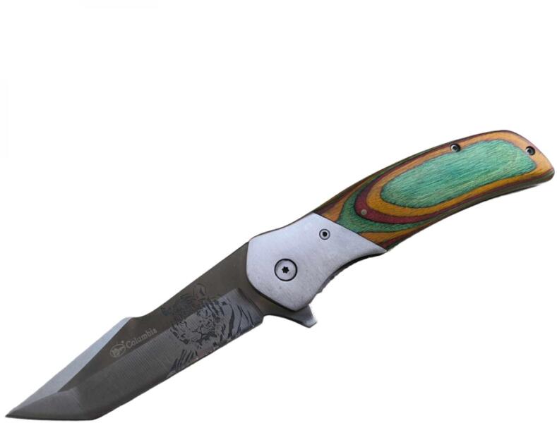 COLUMBIA Outdoor összecsukható kés Tigris Különleges összecsukható zsebkés a legjobb minőségű anyagokból. Tökéletesen kézbe illik, kiváló munkaeszköz. Mindennapi használatra. A kés pengéje tigris ábrázolással díszített, markolata különleges mintázatú. Ideális társ outdoor-tevékenységek kedvelőinek, halászoknak vagy vadászoknak. A kés nyomógombos zárszerkezet