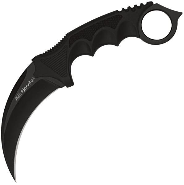 Abban az esetben, ha olyan helyzetekben találja magát, amikor feltűnő és könnyen elrejthető védelmi fegyverre van szüksége, ez a Honshu Karambit kés pontosan megfelel az Ön igényeinek. 7Cr13 rozsdamentes acélból készült pengével van felszerelve, amely fekete felülettel segít minimalizálni a visszaverődést. A formázott fogantyú ergonomikus kialakítású a kényelmes fogás