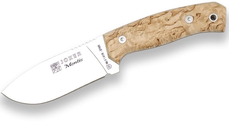 Stabil vadászkés MONTES a túrázás és a szabadtéri tevékenységek szerelmeseinek. A fulltang penge rozsdamentes acélból készült. A nyél göndör nyírfából készült. A fogantyú végén van egy lyuk a zsinór számára. A késhez bőr tok tartozik.
