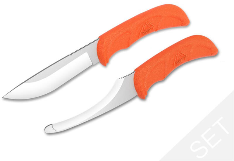 A vadászkés-készletek már régóta népszerűek, mert kiváló funkcionalitásuk megfizethető árral kombinálva sok vadászt megnyert. Most az Outdoor Edge ezt a készletet egy klasszikus európai stílusú zsigerelőhajlattal kombinálva, azoknak a vadászoknak, akik ezt a stílust kedvelik. A pengék 420J2 rozsdamentes acélból készülnek. Az agancs textúrájú, csúszásgátló gumíro