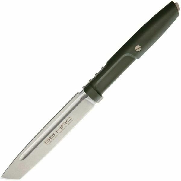 Extrema Ratio RANGER MAMBA ZÖLD KŐ MOSOTT univerzális taktikai kés, Bohler N690 acélból készült, egyoldalas pengével, sima peremmel és Stonewash felülettel. A fogantyú zöld színű Forprén anyagból készül. Az Aspis nylonból készült, speciálisan kialakított tokkal érkezik, amely a kés gyors kioldását teszi lehetővé a MOLLE rendszernek köszönhetően.