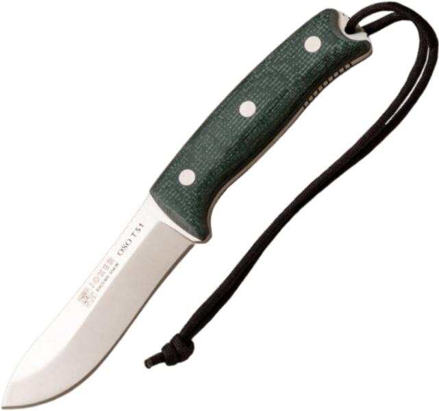 A Joker BEAR TS1 Survival és Bushcraft kés az Albacete (Spanyolország) eredetmegjelölés alatt készült. Ez egy igazán sokoldalú túlélőkés, mivel ergonomikus kialakítása lehetővé teszi, hogy más feladatokra is alkalmas legyen, például vadászat során az állatok megnyúzására. A kés Drop Point teljes pengével rendelkezik, amely Böhler N695 rozsdamentes acélból készült,