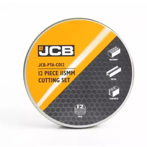 JCB 12 darabos vágótárcsa készlet 115 mm-es sarokcsiszolókhoz. Falazat, beton és fém vágására alkalmas. Fém- és kővágó korongokat, valamint szegmentált gyémánt pengéket tartalmaz. Fémdobozban a kényelmes tárolás érdekében.