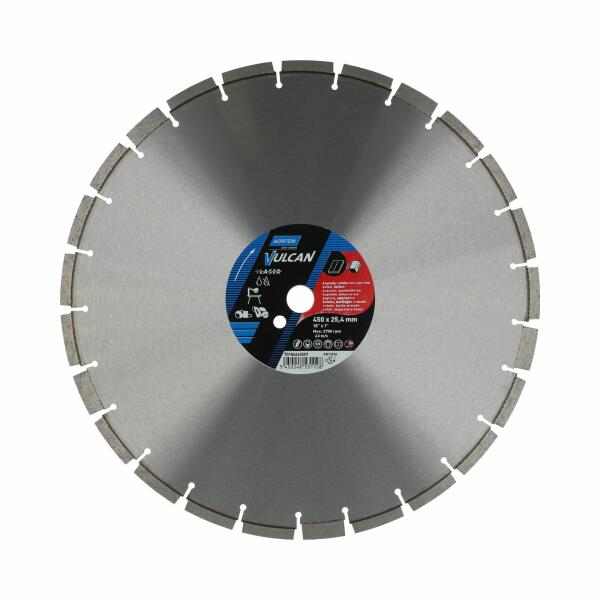 Norton Vulcan Combo gyémánt vágókorong építési munkák, épületek felújítása, útépítés és vízvezeték munkákhoz. Minden építőanyag vágásához, beleértve az aszfaltot, kátrányokkal bevont lapok, üreges tégla, tetőcserepek, homokkő, habarcshézag és friss beton, betoncsövek, beton járdaszegélyek, csempe, térkövek, közepes macskakövek és beton burkolólapok vág
