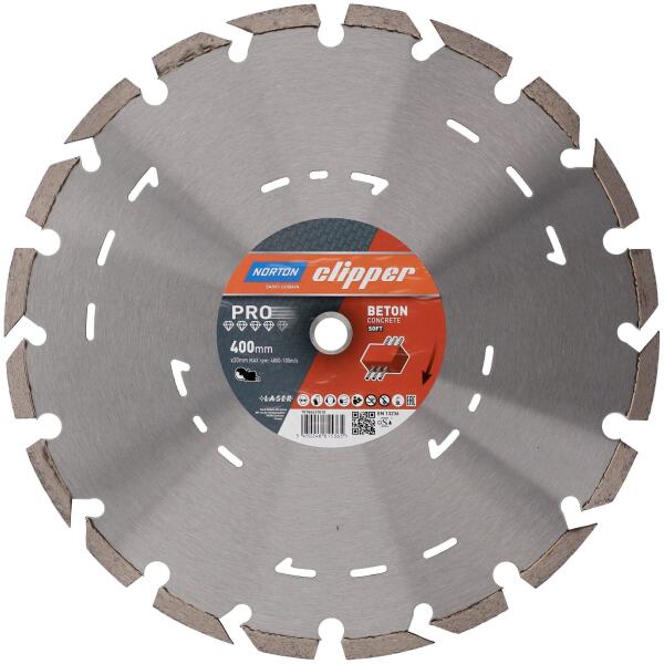 Norton CEE Ceramic Tiles gyémánt fűrészlap betonszegély- és járdalapok, betontömbök, agyagtéglák és szilikátok vágásához. Szegmentált szinterezett tárcsák 115, 125, 180 és 230 mm-es méretben kaphatók. Felhasználás: megkeményedett beton, kemény klinker, kerámia tetőcserép, homlokzati tégla, vasbeton, beton járólapok, beton csövek/szegélyek, járólapok, mészkő be
