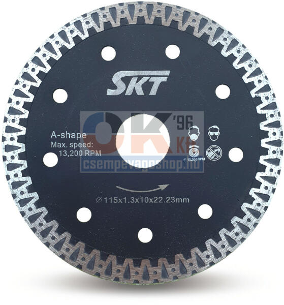Csempék, gres lapok és természetes kő vágására. Átmérő: 125 mm Tárcsa geometria: Folyamatos Szegmens alakja: Turbo Szegmens magasság: 10 mm Furat: 22.2 mm