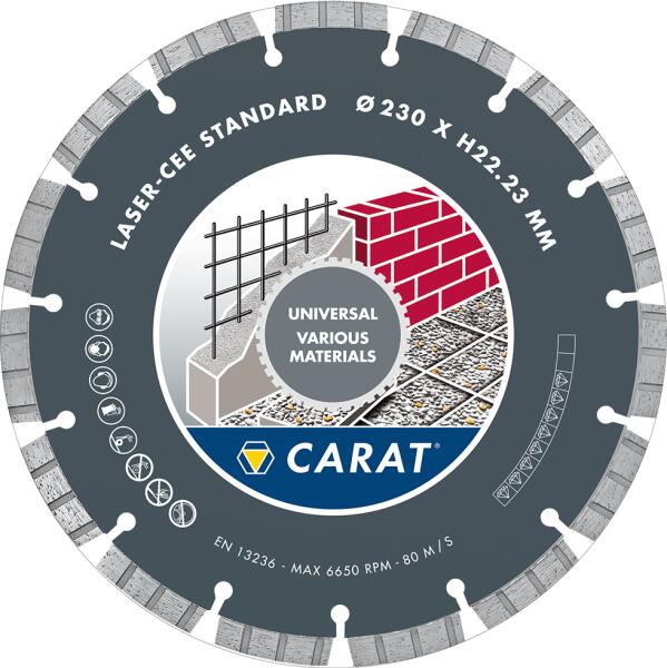 A Norton Clipper Pro Universal Laser egy erős vágótárcsa, amelyet kifejezetten betonlapok és általános építőanyagok megmunkálására terveztek. 12 mm magas szegmenseivel lenyűgöző élettartamot kínál, így tartós és megbízható választás építési és felújítási projektekhez. A gyémánt tárcsa sokoldalú, száraz és nedves vágást is lehetővé tesz. A 12 mm magas szeg