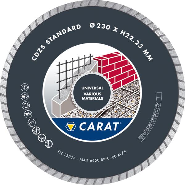 Műszaki adatokTárcsa vastagság 2 mmFuratátmérőM14 mmTárcsa átmérő150 mmLeírásA szegmensben lévő finom turbó minta sima vágási élt eredményez a különböző építőipari anyagokban. Száraz használatra is alkalmas de vízhűtéses használat esetén növeli a tárcsa élettartamát. TípusRD MegnevezésGyémánttárcsa általános építőipari anyagokhoz