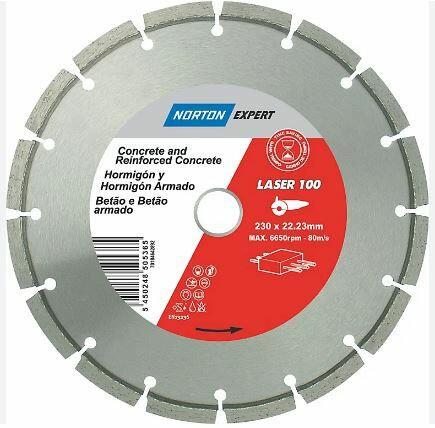 Norton Expert Laser 100 lézerhegesztett szegmentált vágókorong. Univerzális, a legtöbb építőanyaghoz alkalmas: beton, vasbeton és kemény anyagok, beleértve a betontömböket is, járdalapok, födémek és falazatok, stb. MŰSZAKI ADATOK Gyártói cikkszám: 70184640914 Átmérő: 230 mm Furat: 22,23 mm Szegmens magasság: 10 mm