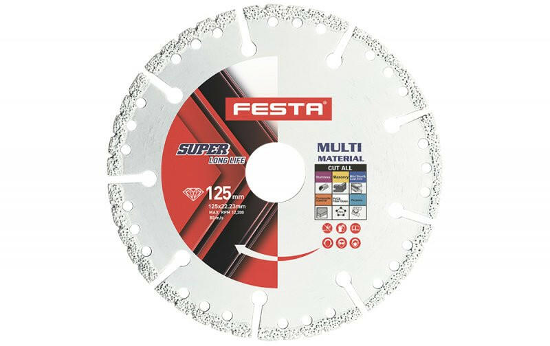 A termék leírása: univerzális vágókorong, gyémánt réteggel alkalmas rozsdamentes acélhoz, acélhoz, falazathoz, kerámiához, műanyaghoz