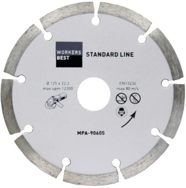 125mm x 22,2mm max. 80m/s max. 12200 fordulat/perc Alkalmazás: Beton, klinker, márvány, csempe, tetőcserép, tégla, homokkő