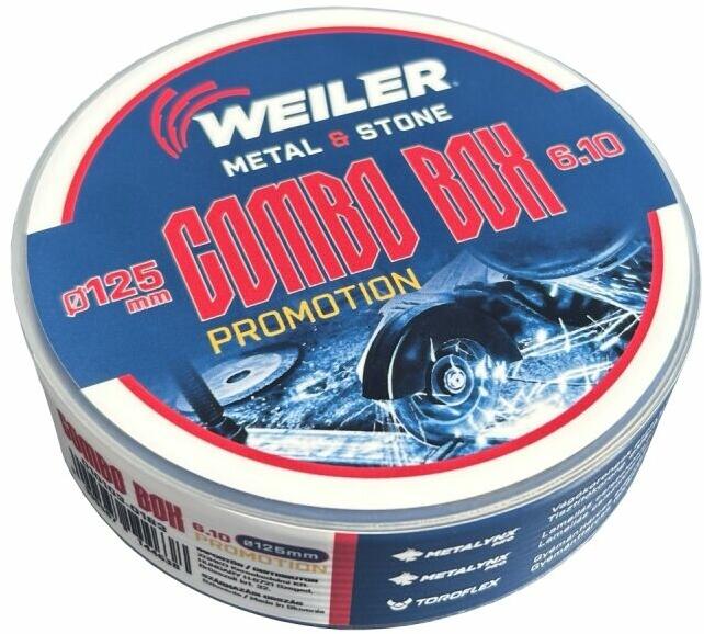 A WEILER COMBO BOX teljesen egyedi, a felhasználók széleskörű igényeire hangolt 10 részes összeállítás, amely a sarokcsiszolókhoz használatos vágó- és csiszoló korongokat, gyémánttárcsákat tartalmazza 125mm-es változatban. A készletben található 6 szerszám fém, fa felületek és anyagok, valamint különböző építőelemek mint, tégla, beton, lágy gránit; cserép; b