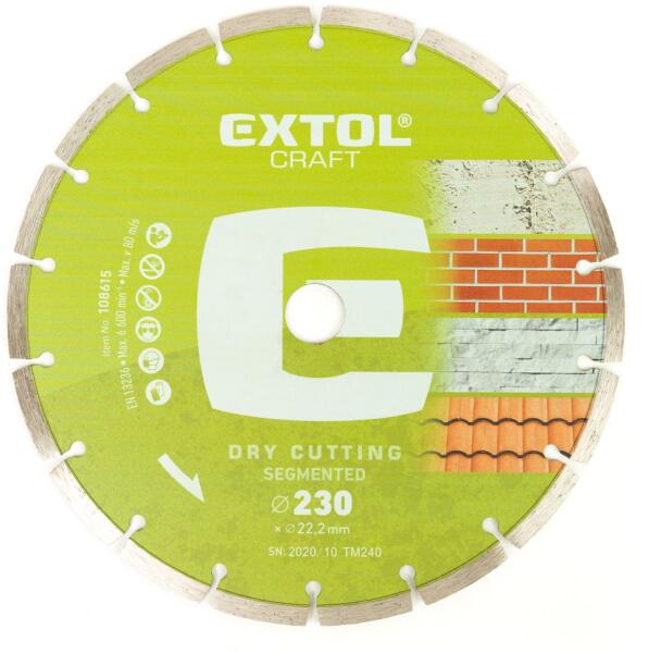 Beton, tégla és abrazív anyagok vágására. Átmérő: 230 mm Tárcsa geometria: Szegmentált Szegmens alakja: Híd Szegmens magasság: 15 mm Furat: 22.2 mm