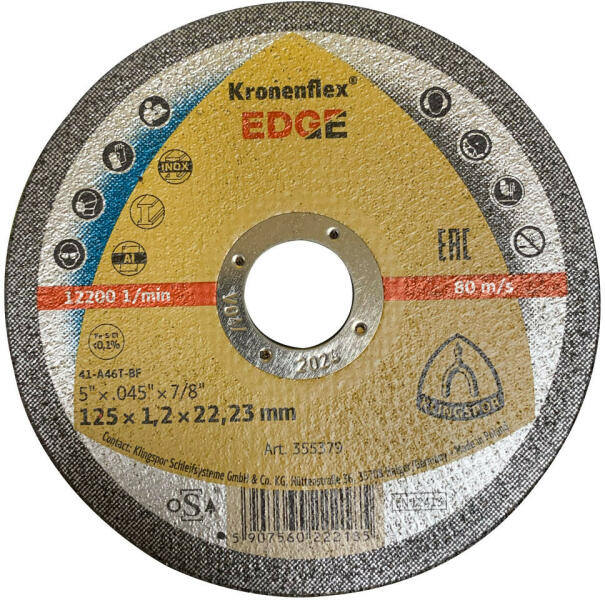 Termékjellemzők Műszaki adatok Tárcsa vastagság 4,2 mm Furatátmérő 22,23 mm Tárcsa átmérő 150 mm Leírás Egyszerű, gyors és biztonságos ívvágást biztosít Az oldalsó szegmensek megakadályozzák az alávágást azaz a hordozóanyag szegmensek alatti elvékonyodását. Száraz használatra is alkalmas de vízhűtéses használat esetén növeli a tárcsa élettartamát. Típus S