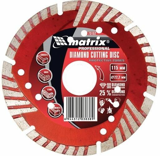Beton és tégla vágásához. Átmérő: 125 mm Tárcsa geometria: Szegmentált Szegmens alakja: Turbo/Sík Szegmens magasság: 10 mm Furat: 22.2 mm