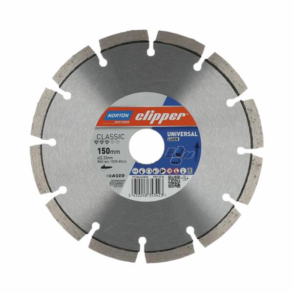 A Norton Clipper Classic Universal Laser gyémánt vágókorong egy költséghatékony, lézerrel hegesztett gyémánt tárcsa, amely száraz és nedves vágásra egyaránt alkalmas. Kiváló minőség, kiváló ár-érték arány és hosszú élettartam jellemzi őket, ami azt jelenti, hogy jó tartósságot és hatékony vágást kínálnak. A tárcsa különösen alkalmas asztali fűrészekhez.