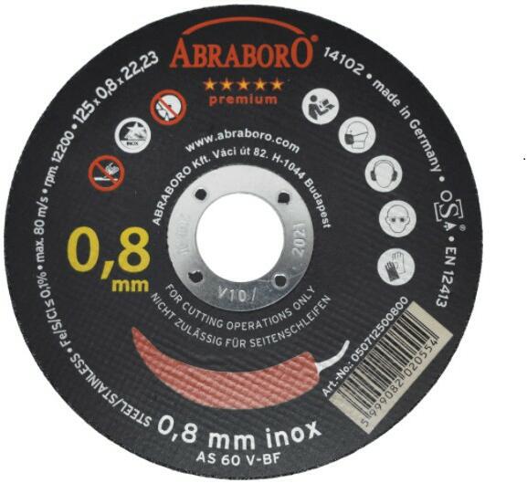 (25db/csomag) ABRABORO® Chili INOX GOLD EDITION EXTRAvékony vágókorong gyors vágás hosszú élettartam pontos vágás nyugodt futásMINIMÁLISsorjaképződés zajszint szikraképződés elszineződés vágási hulladék Ajánlott: vékonyfalú csövek, profilok, vékony fémlemezek, karosszéria lemezek vágásához Acél, rozsdamentes acél, nemvas fémek vágásához (25db/csomag)