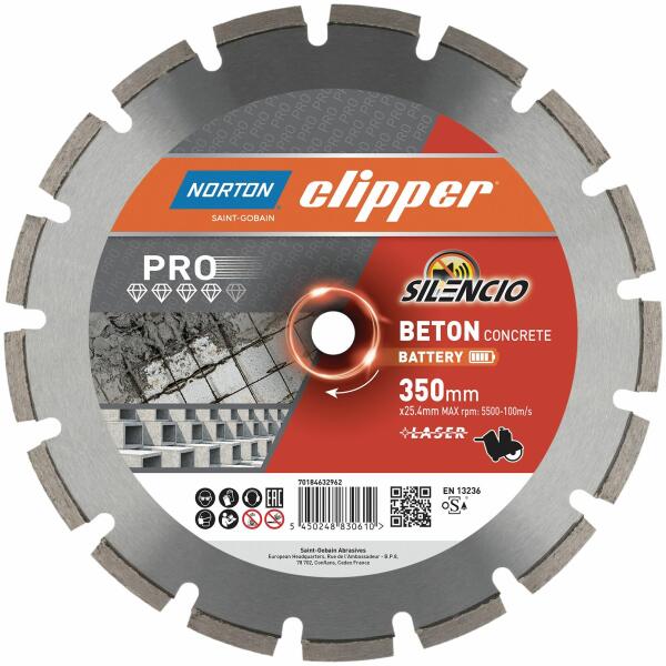A Norton Clipper Pro Beton Battery Silencio Ø 300 - 350 mm-es gyémánttárcsa a legkorszerűbb megoldást jelenti a professzionális építési és felújítási munkákhoz. Az akkumulátoros aljzatvágó, különösen a Norton Clipper CS352 B teljesítményének optimalizálására tervezett vágótárcsa a hatékonyság, a tartósság és a felhasználói kényelem páratlan kombinációját k