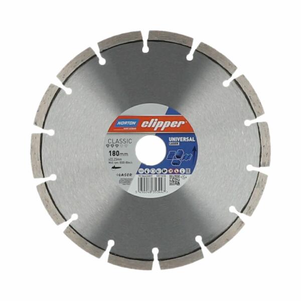 A Norton Clipper Classic Universal Laser gyémánt vágókorong egy költséghatékony, lézerrel hegesztett gyémánt tárcsa, amely száraz és nedves vágásra egyaránt alkalmas. Kiváló minőség, kiváló ár-érték arány és hosszú élettartam jellemzi őket, ami azt jelenti, hogy jó tartósságot és hatékony vágást kínálnak. A tárcsa különösen alkalmas asztali fűrészekhez.