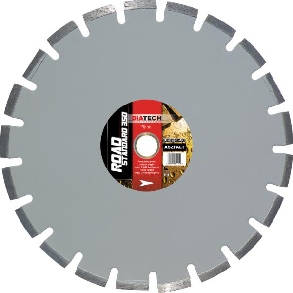 A Road Standard Aszfalt szegmenses gyémánttárcsa 10 mm-es szegmensmagasságával gazdaságos megoldást nyújt aszfalt és abrazív anyagok önjáró fugavágó géppel történő vágáshoz. Száraz és vizes vágáshoz egyaránt használható a tárcsa. Jellemzői: Standard minőség Lézerhegesztett, szegmenses gyémánttárcsa Ajánlott felhasználás: Kiválóan felhasználható az alábbi