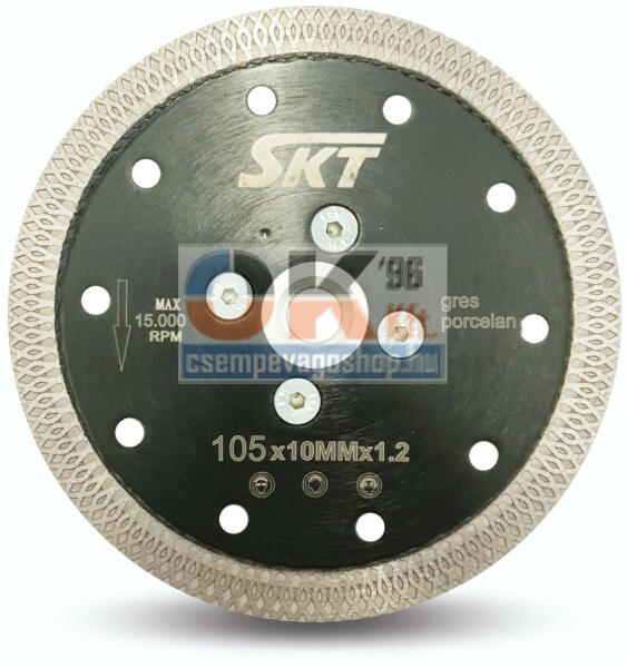 ABRABORO Gyémántszemcsés vágókorong No. 15 Extra vékony (1,5 mm, ill. 2,0 mm) tárcsa furaterősített alaplappal Folyamatos vágóél, egyedi élgeometriával, gyors és tiszta vágás Kiválóan alkalmas gres (kőporcelán), kemány kerámialapok, gránit, cotto lapok, terazzo és porcelán vágásához Száraz és vízes vágáshoz egyaránt javasolt Szegmensmagasság: 10 mm