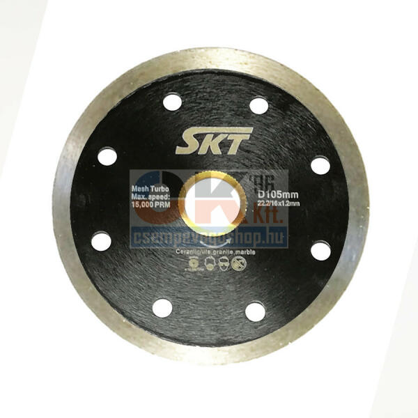 Műszaki adatokTárcsa vastagság 2,2 mmFuratátmérő22,23 mmTárcsa átmérő125 mmLeírásEz a turbótárcsa hosszú élettartamot és magas vágási kapacitást biztosít az építőipari anyagok nagy választékában. Száraz használatra is alkalmas de vízhűtéses használat esetén növeli a tárcsa élettartamát. TípusSD-E MegnevezésGyémánttárcsa általános építőipari anyagokho