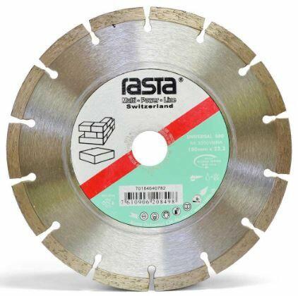 Norton Rasta gyémánttárcsa felhasználási területe: Építési anyagok, térkő, beton zsaluelemek, homokkő. Ajánlott puha és közepesen kemény anyagokhoz. Száraz vagy nedves vágás. Gazdaságos kivitel, ipari célra. MŰSZAKI ADATOK Gyártói cikkszám: 70184640783 Átmérő : 230 mm Furat : 22,23 mm Szegmens magasság : 8x2,4 mm