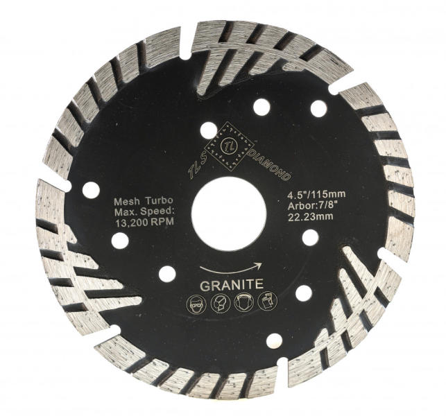 TLS CYCLONE TURBO gyémánt vágókorong Átmérő: d=125 mm Furatátmérő: d=22,23 mm Vágószegmens magasság : 10 mm Vágó szegmens vastagság: 2.5 mm Alkalmazás: száraz és vizes használat Alkalmazási terület: Gránit, márvány, természetes kövek, beton, tégla, csempe, kőműves anyagok, falazat vágásához (mélyvégésokhoz)és csiszolásához TLS CYCLONE TURBO gyémánt vágóko