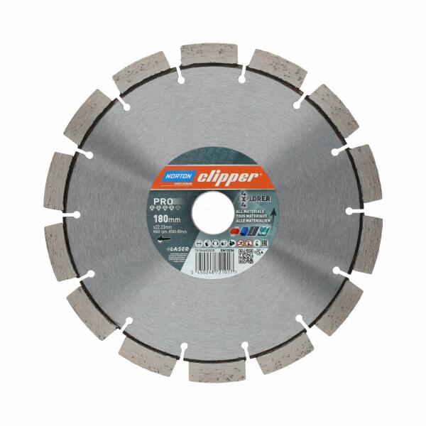 A Norton Clipper Pro Universal Ductile egy vákuumforrasztott többanyagú vágókorong, amelyet kifejezetten különféle anyagok száraz vágására terveztek. Ez az univerzális tárcsa sokféle felhasználásra alkalmas, beleértve az általános célú építőanyagokat, betont, aszfaltzsindelyt, PVC-t, agyaggal és üvegszállal erősített gyantát, korlátozott mennyiségű fát, gömbgraf