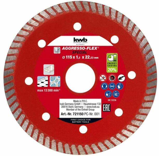 Professzionális korong, csempék vágásához. A gyémánt penge peremének különleges formája garantálja a gyorsabb vágási sebességet a legnehezebb anyagokban anélkül, hogy veszélyeztetné a felület minőségét. A készlet tartalmaz egy szűkítőt a belső átmérő csökkentésére. Cserép, kerámia, kőagyag, márvány és gránit burkolólapok vágására használható. A VERKE