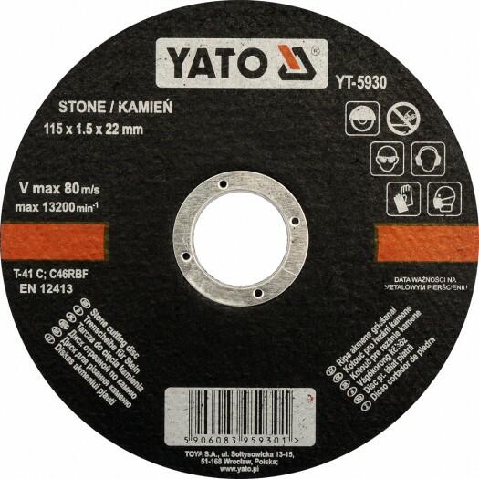 Vágókorong kőhöz 5 db/csomag 115 × 1,5 × 22 mm EN 13200 Max: 13200 fordulat Kód:YT-5930