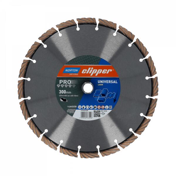 A Norton Clipper Pro Universal Laser egy erős vágótárcsa, amelyet kifejezetten betonlapok és általános építőanyagok megmunkálására terveztek. 12 mm magas szegmenseivel lenyűgöző élettartamot kínál, így tartós és megbízható választás építési és felújítási projektekhez. A gyémánt tárcsa sokoldalú, száraz és nedves vágást is lehetővé tesz. A 12 mm magas szeg