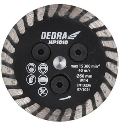 Pontos vágásokhoz Száraz vágásra alkalmas – lehetővé teszi a víz nélküli vágást A DEDRA HP1010 gyémánt vágótárcsa műszaki adatai Tárcsa típusa: gyémánt Maximális fordulatszám: 15 300 RPM Átmérő: 50 mm Vastagság: 1,8 mm Gyémánt bevonat magassága: 6 mm Rögzítés típusa: M14 Felhasználás: gresz, kerámia, gránit és márvány vágása