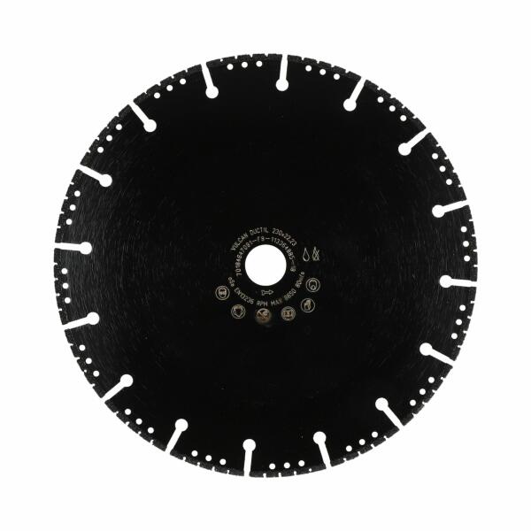 Norton Vulcan Ductile több anyagból készült vákuumforrasztott gyémánt vágókorong sokféle anyag vágásához. Felhasználás: általános célú építőanyagok, beton, aszfalt tetőzsindely, műanyag, PVC, agyag és üvegszál erősítésű gyanta, kis mennyiségű fa, gömbgrafitos vas és fémek. MŰSZAKI ADATOK Gyártói cikkszám: 70184693492 Átmérő: 350 mm Furat: 25,4 mm Gyémán