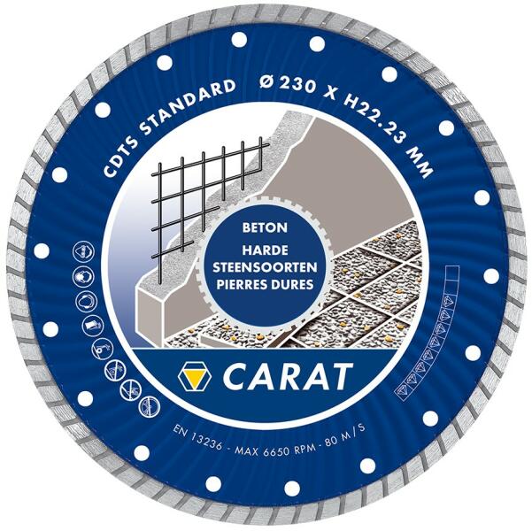 Jó teljesítményű lézerhegesztett vágókorong 10 mm magas szegmensekkel. Széles felhasználási kör. Kézi gépekhez, aljzatvágókhoz és asztali fűrészekhez. Nagy teljesítményű vágókorong beton és közepesen kemény tűzálló anyagokhoz. Felhasználás: beton, vasbeton, betonlapok, tűzálló anyagok alumínium-oxiddal. Száraz vagy nedves vágás. Lézerhegesztett szegmensek. M