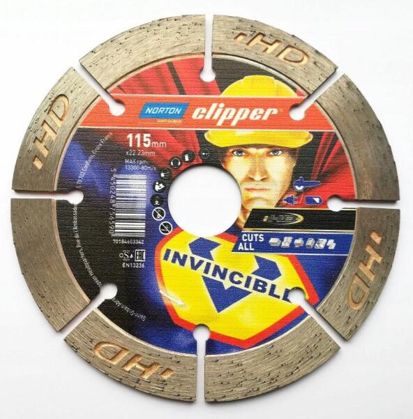 Norton Clipper legyőzhetetlen gyémánt vágókorongok. A Norton Clipper Invincible gyémánt tárcsák különböző típusú építőanyagok gyors és kényelmes vágására tervezték. A legyőzhetetlen teljesítmény és a rendkívül biztonságos konstrukció kombinációját kínálják. Az eszköz jellemzői: legmagasabb szintű felhasználói biztonság. Legyőzhetetlen teljesítmény és
