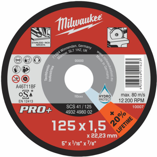 Alkalmazások: Vas és kénmentes csúcsminőségű vékony vágótárcsa minden acélfajtára. Legalkalmasabb rozsdamentes (a 350 x 4 mm kivételével)- és saválló acélok, hőálló acél, rugóacél, lágy- és szemcsés vágáshoz. Jellemzők: 50%-kal rövidebb vágási idő, 50%-kal kevesebb por szemben a hagyományos 3 mm vastag tárcsákkal. Kisebb anyagvesztesség.