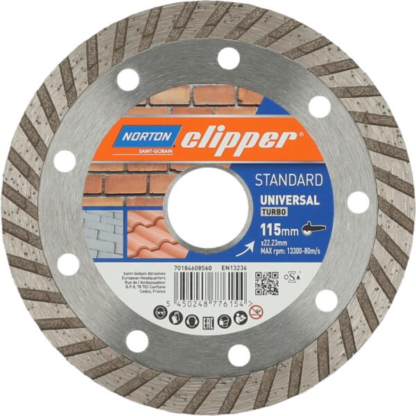 Műszaki adatokTárcsa vastagság 2,2 mmFuratátmérő22,23 mmTárcsa átmérő115 mmLeírásEz a turbótárcsa hosszú élettartamot és magas vágási kapacitást biztosít az építőipari anyagok nagy választékában. Száraz használatra is alkalmas de vízhűtéses használat esetén növeli a tárcsa élettartamát. TípusSD-E MegnevezésGyémánttárcsa általános építőipari anyagokho