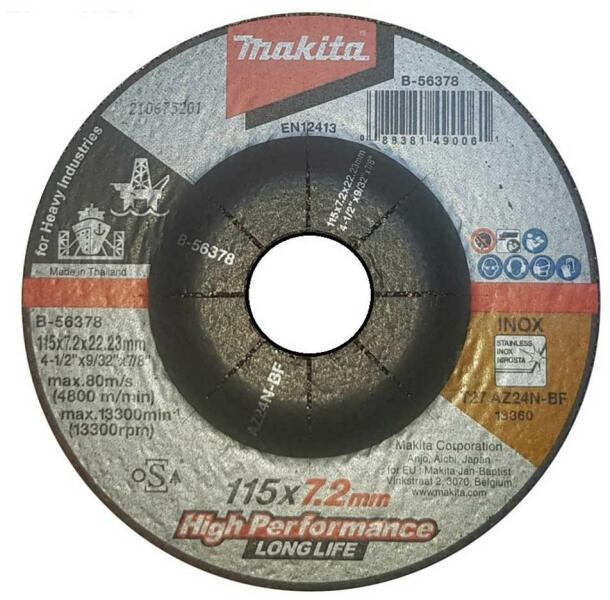 Makita csiszolótárcsa Inox 115 x 7,2 mm AZ24N Long Life